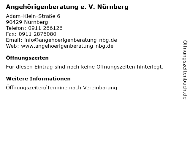 Á Offnungszeiten Angehorigenberatung E V Nurnberg Adam Klein Strasse 6 In Nurnberg