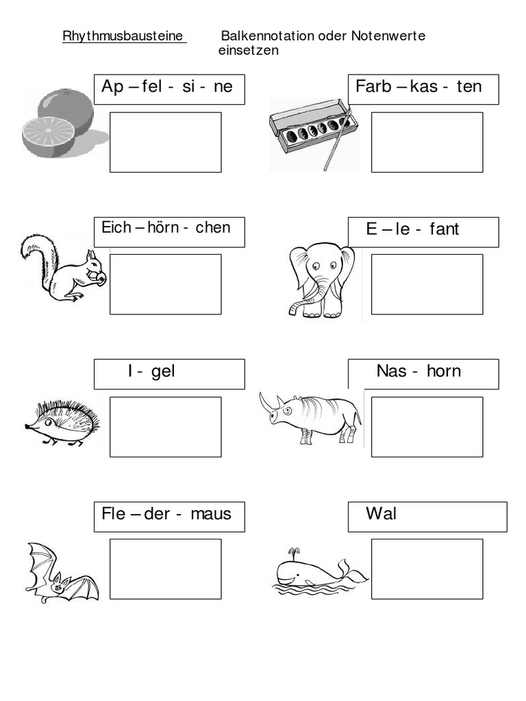Weitere unterrichtsstunden haben die sus dahingehend zum üben genutzt, rhythmusbausteine mit den passenden notenwerten zu vervollständigen, auf das instrumentalspiel zu übertragen und hörend.